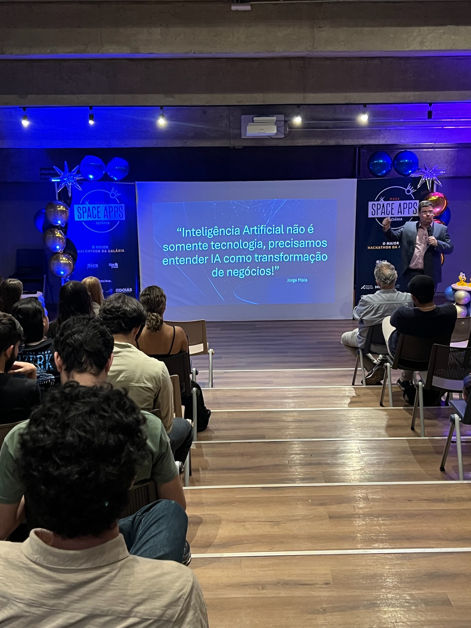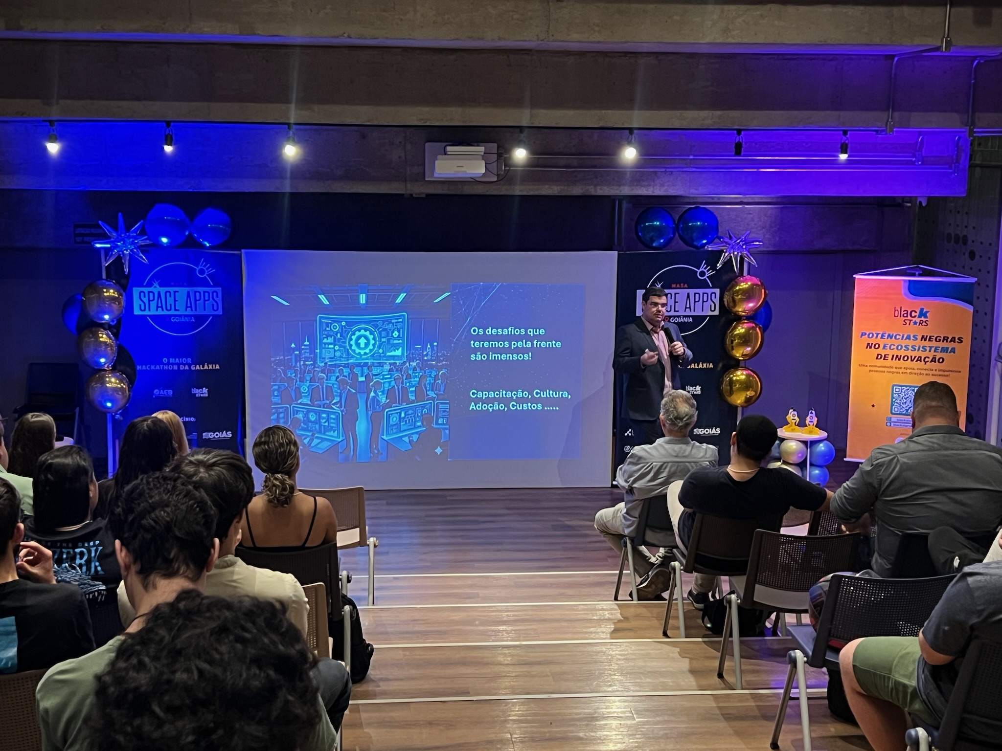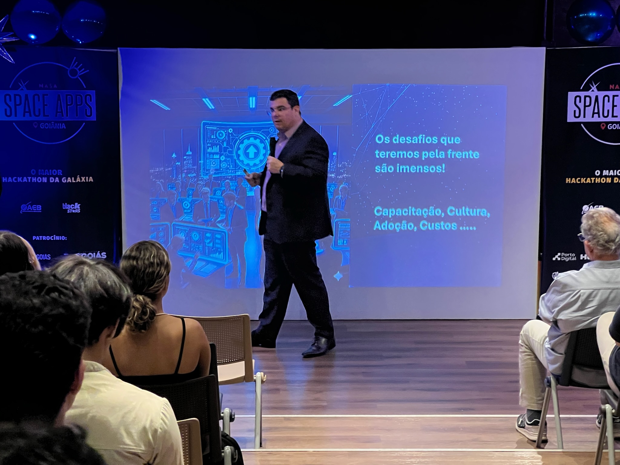 O NASA Space Apps Challenge é um hackathon global que convida pessoas de diversas áreas a usarem dados abertos da NASA e parceiros. Em equipes, os participantes desenvolvem soluções inovadoras para desafios reais relacionados à Terra e à exploração espacial, unindo ciência, tecnologia e criatividade.