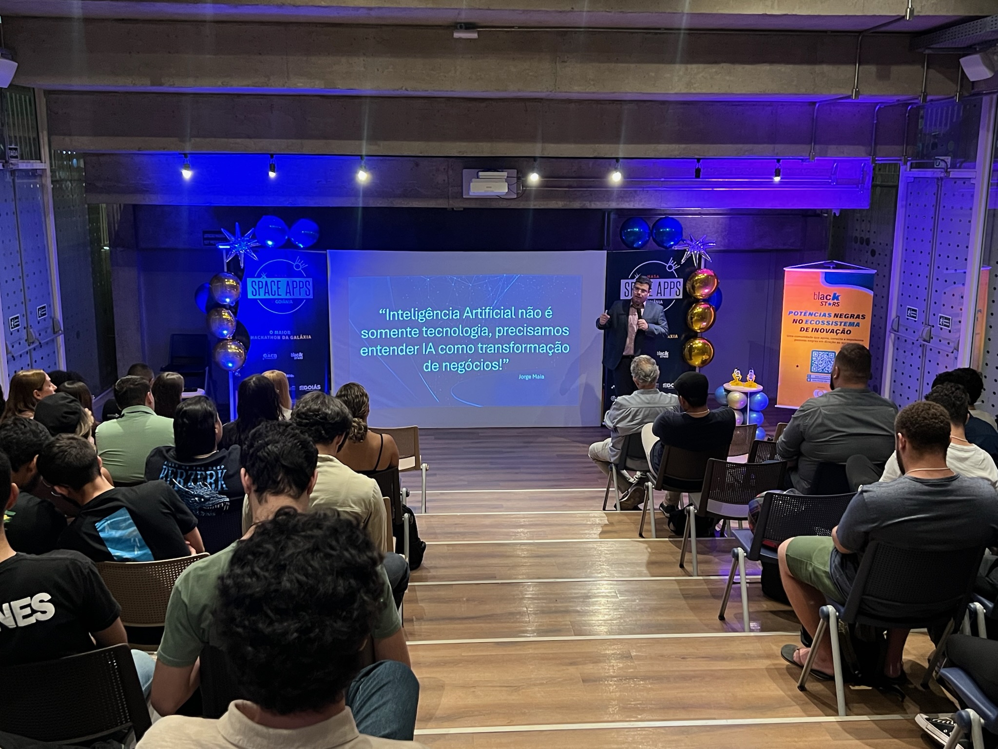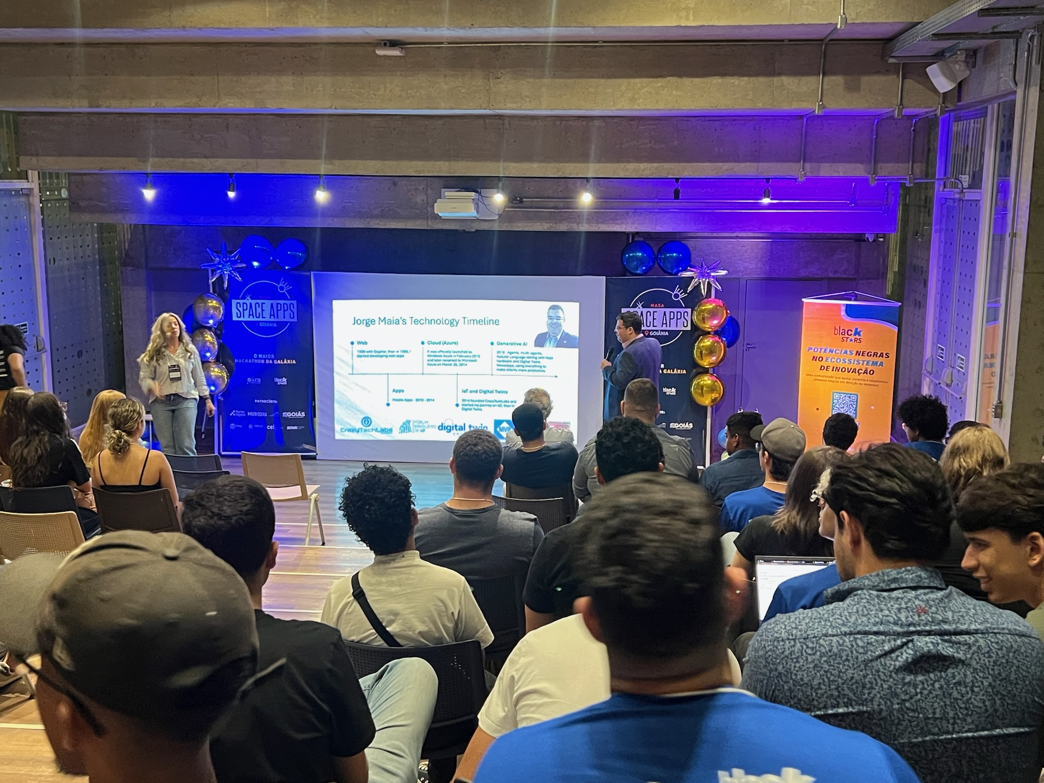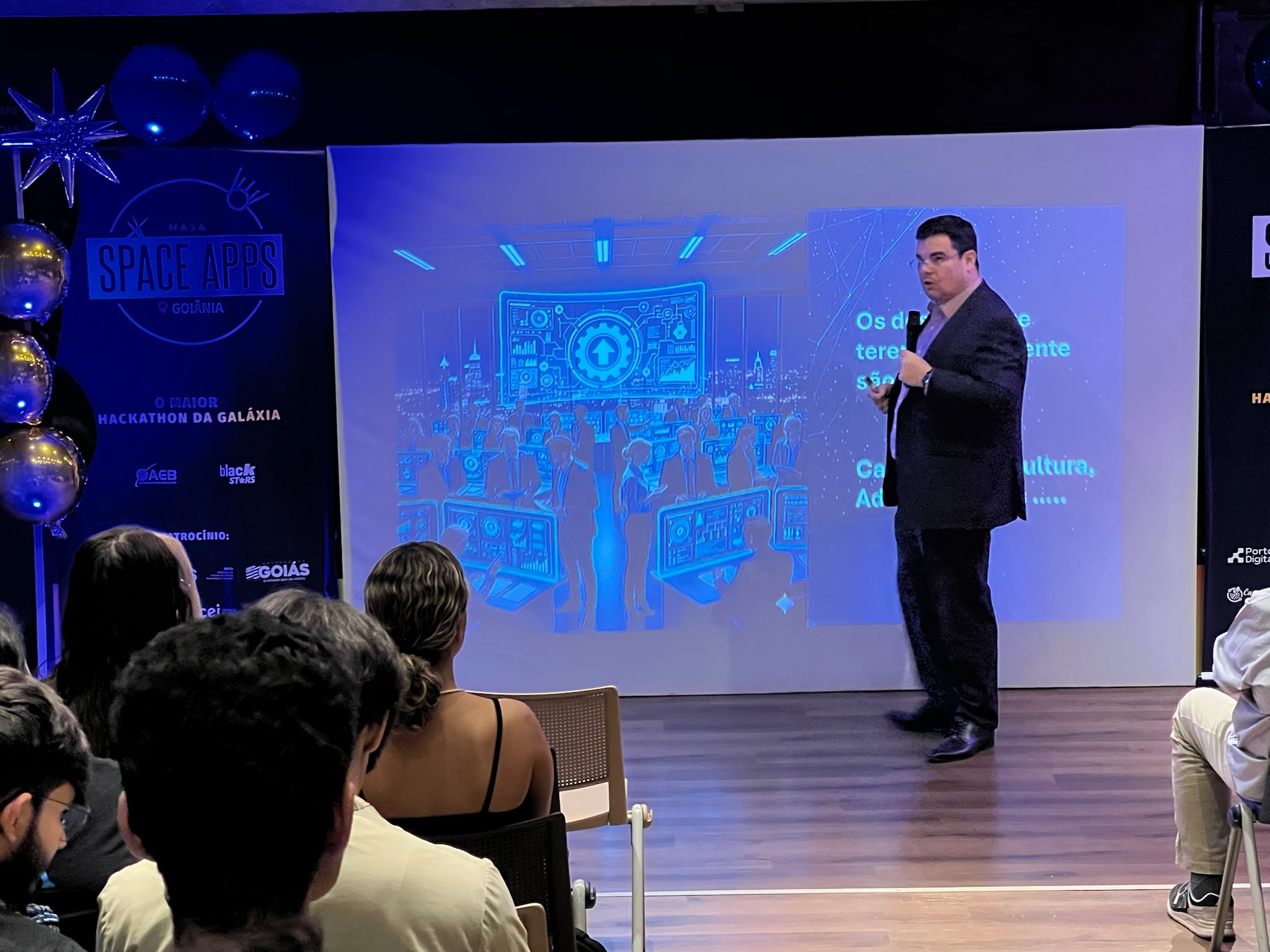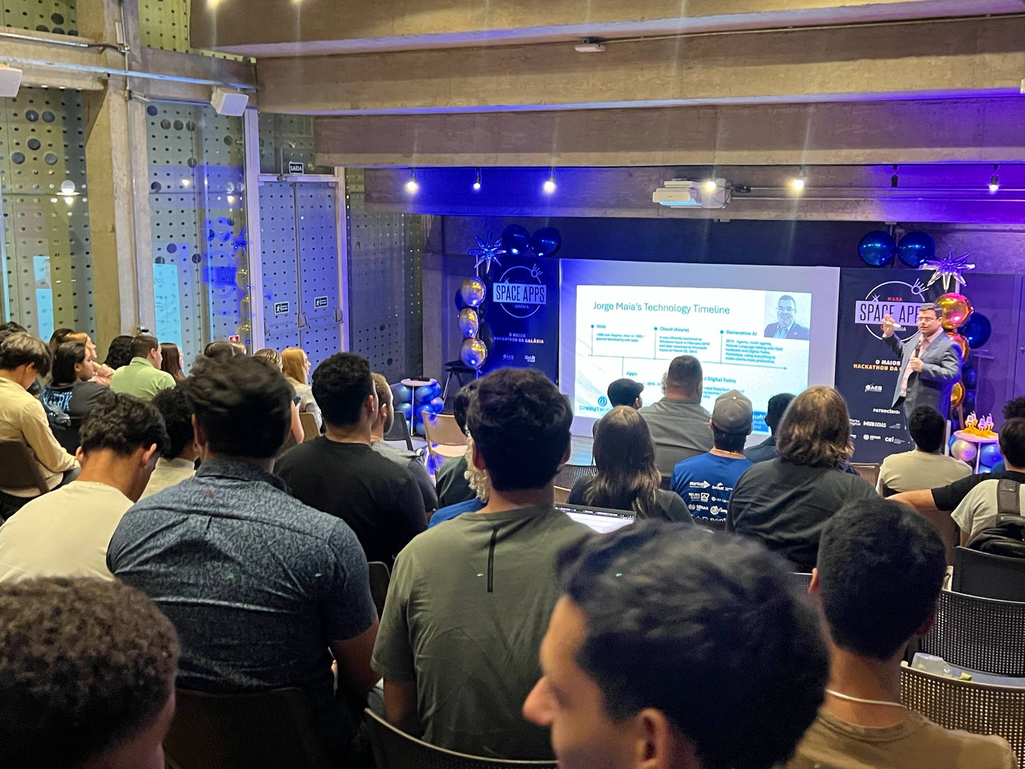 O NASA Space Apps Challenge é um hackathon global que convida pessoas de diversas áreas a usarem dados abertos da NASA e parceiros. Em equipes, os participantes desenvolvem soluções inovadoras para desafios reais relacionados à Terra e à exploração espacial, unindo ciência, tecnologia e criatividade.